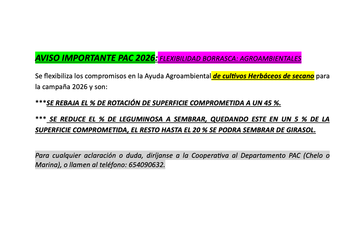 AVISO IMPORTANTE PAC 2026: FLEXIBILIDAD BORRASCA: AGROAMBIENTALES